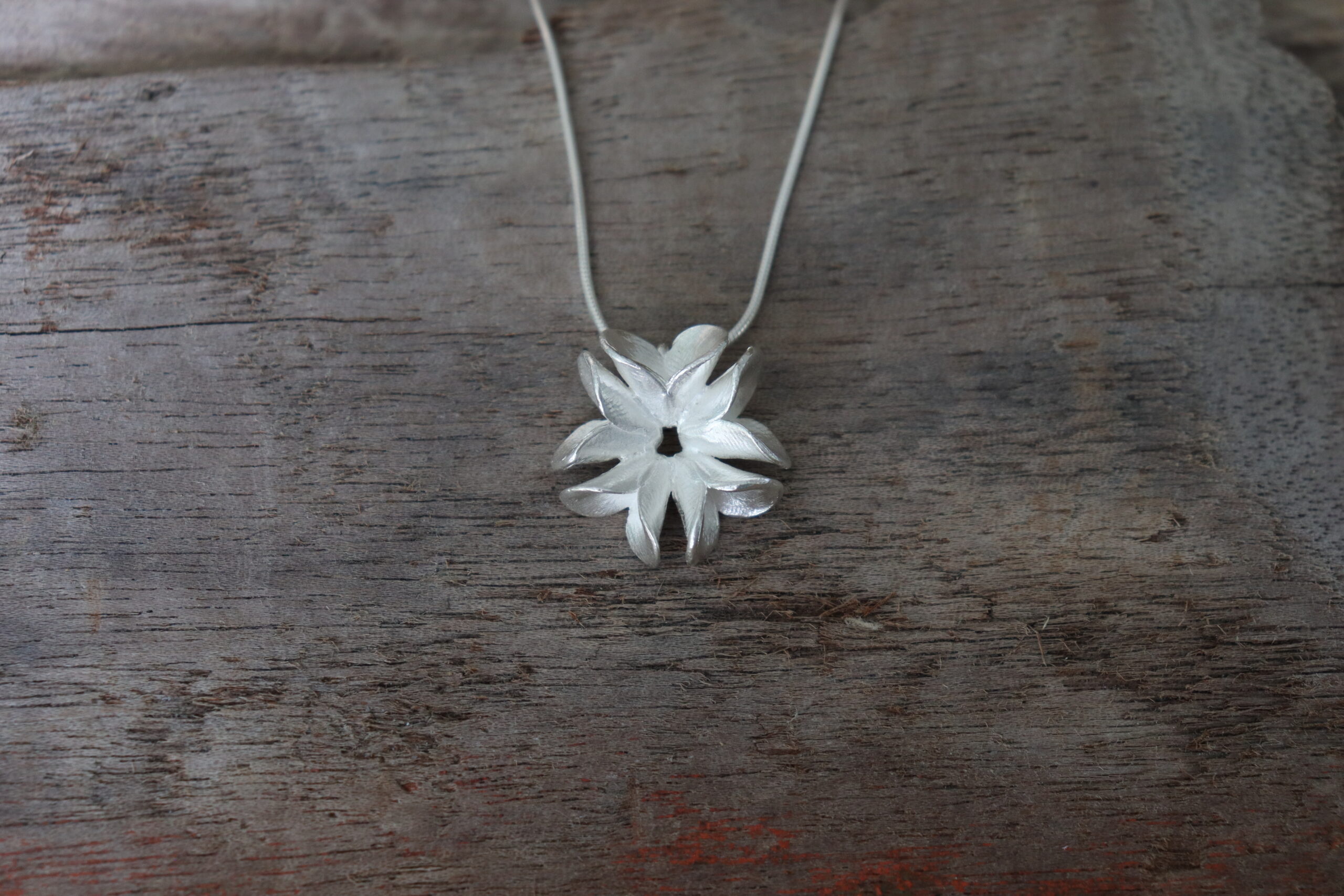 This pendant is from my Fingerprint Pods series inspired by the whimsical seedpods of the Australian native trees; Banksias. The pods are hand moulded in wax by me and therefore have a lovely surface texture from my fingerprints. They are then cast in 925 silver, cleaned and soldered to become a pendant that hangs on a 45cm long snake chain. Elegant and classic style perfect for everyday or to give that special accent to a festive outfit.